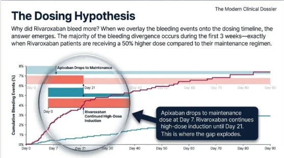 • The Dosing Hypothesis: Why the difference? The bleeding divergence explodes in the first 3 weeks.