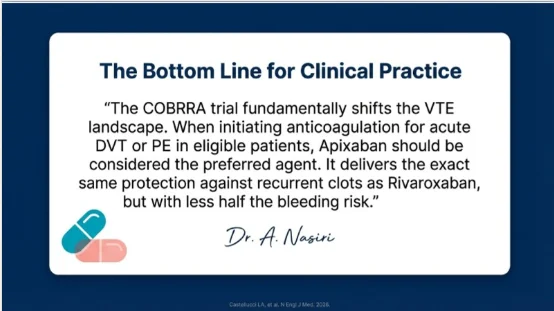 “A recent gem from NEJM, COBRRA trial: an international trial with a prospective, randomised, open-label, and blinded end-point design clear the long-standing debate of apixaban vs rivaroxaban (head-to-head) bleeding risk when a decision to start anticoagulants for acute VTE is taken.