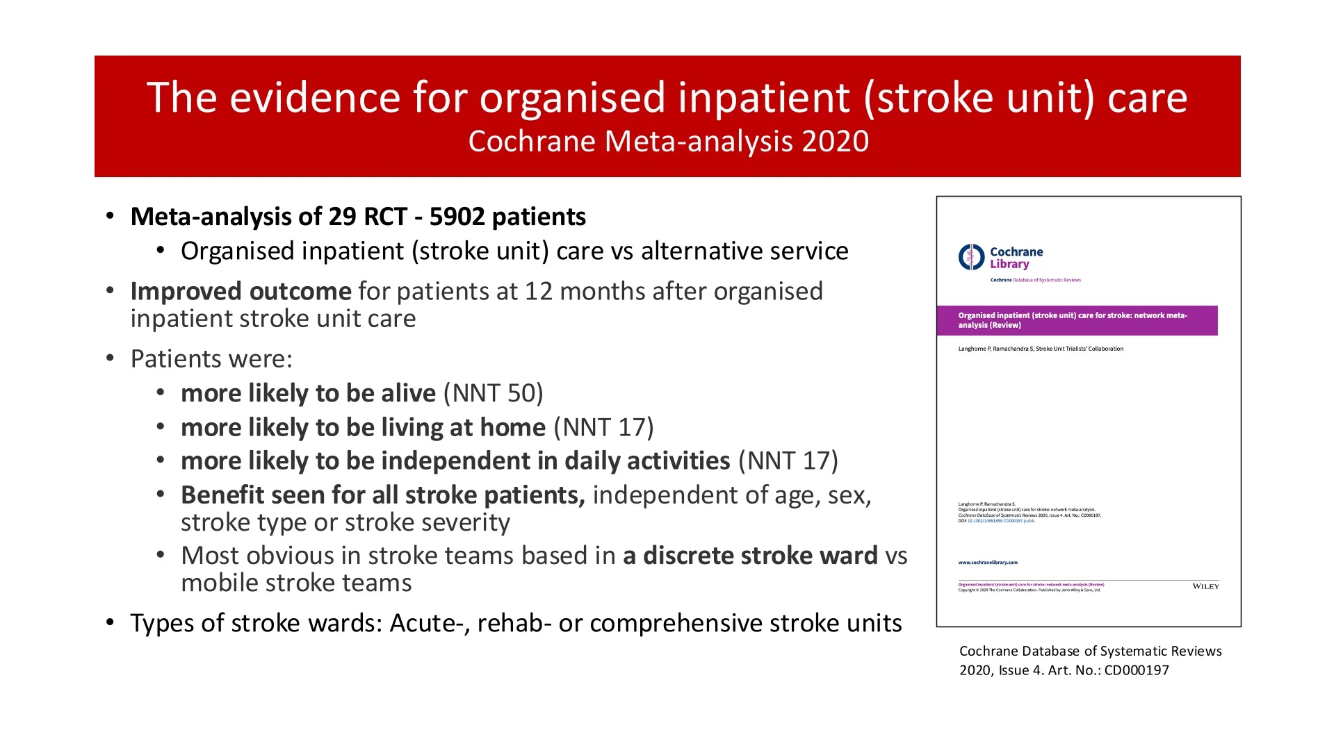 As we celebrate new evidence and success of advanced treatment we must strenghen and improve access to stroke unit care, our most impactful intervention in stroke.