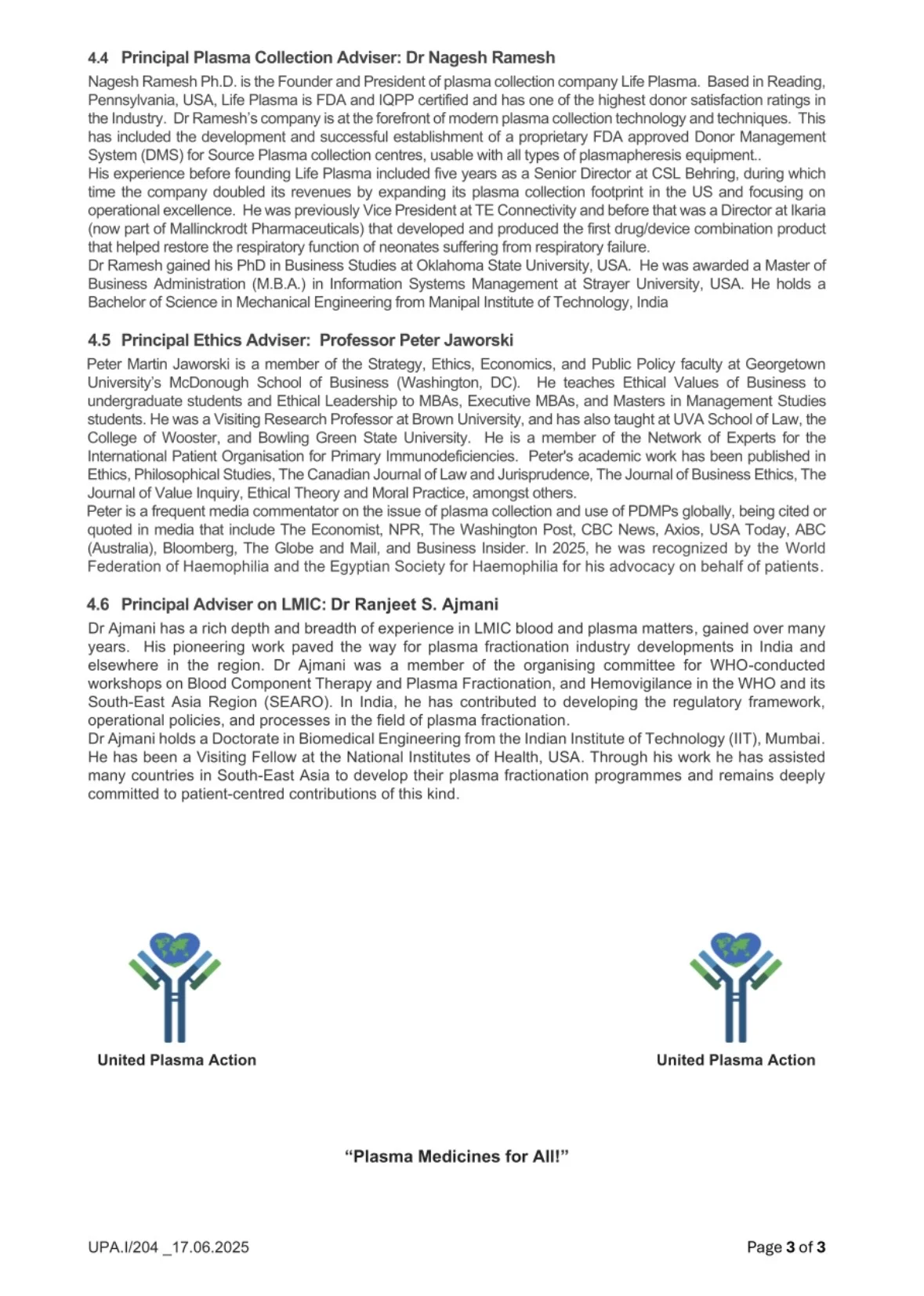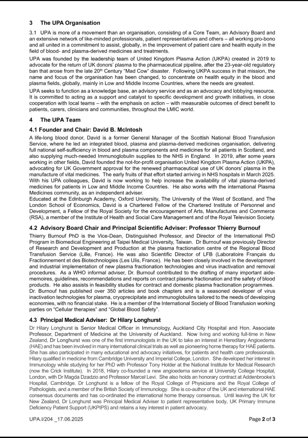 “Recent enquiries about the United Plasma Action organisation prompt me to share this document more widely with fellow LinkedIners.