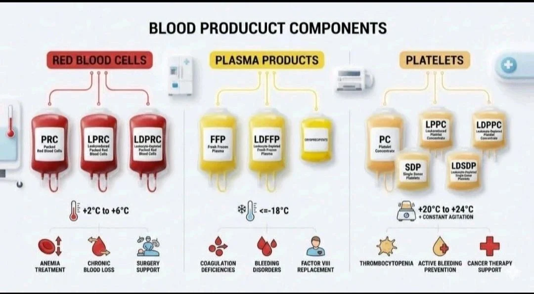 - Maximizes utility: One unit serves multiple patients (RBCs, plasma, platelets)