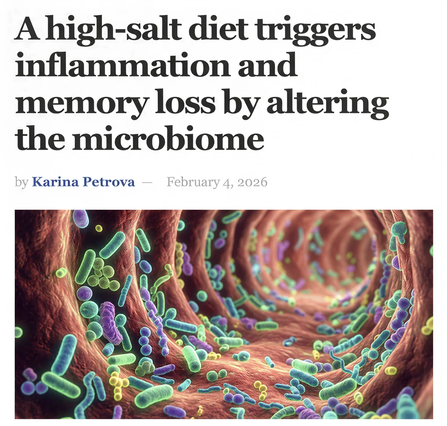 ”A high-salt diet triggers inflammation and memory loss by altering the microbiome.