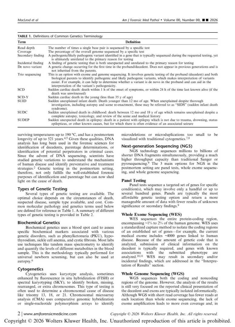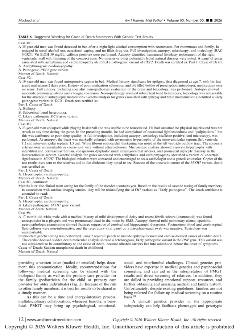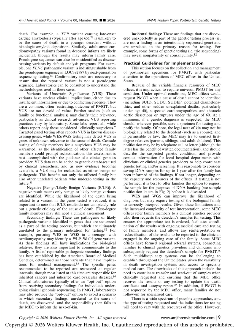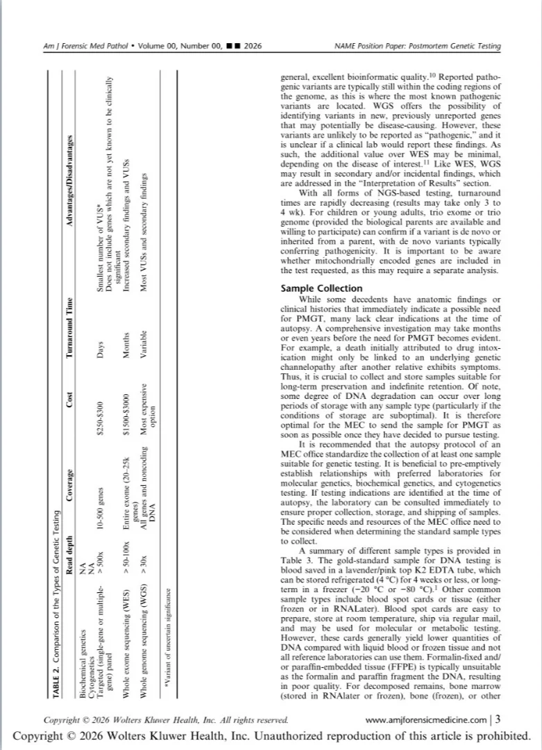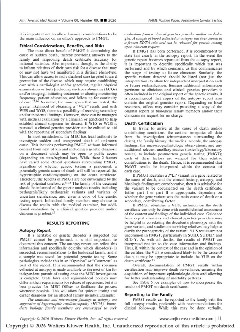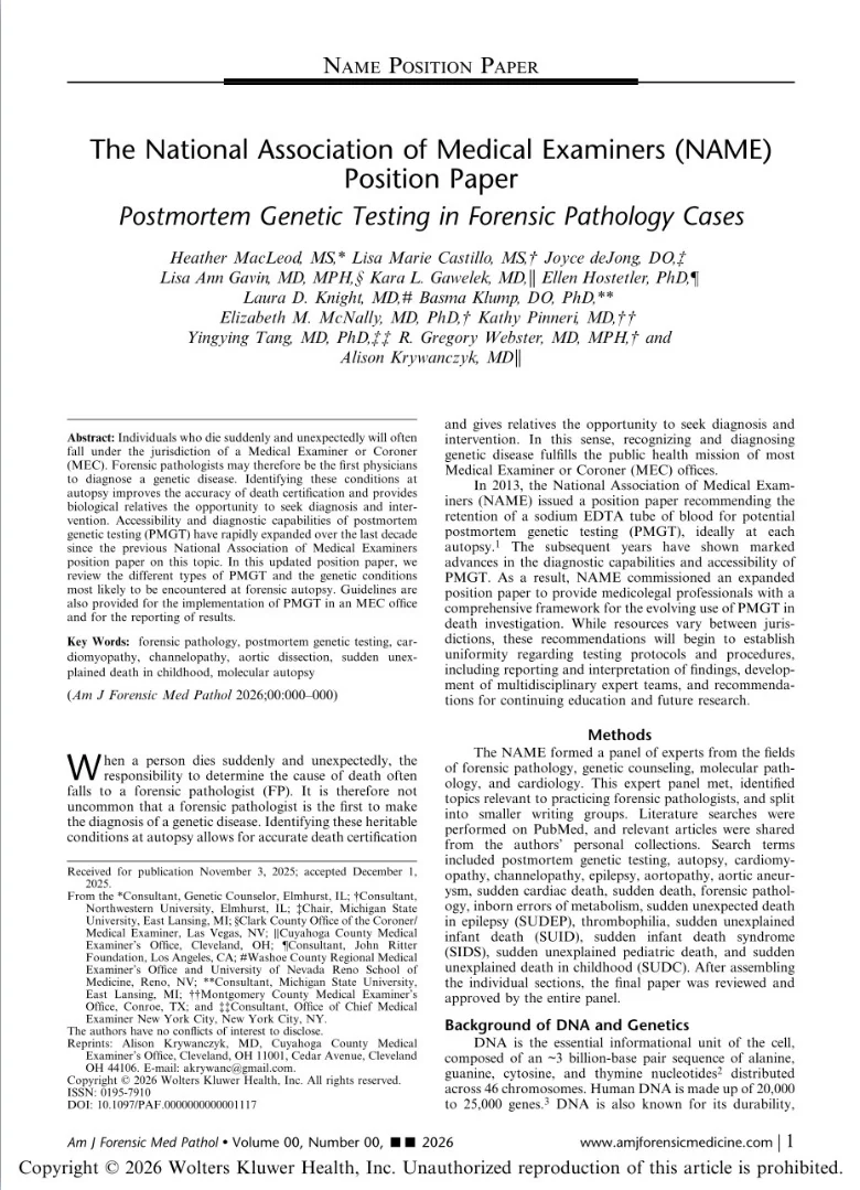 “I am excited to share this important new work from the National Association of Medical Examiners implementing diagnostic genetic testing in Medical Examiner and Coroner Offices.