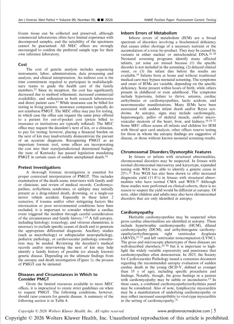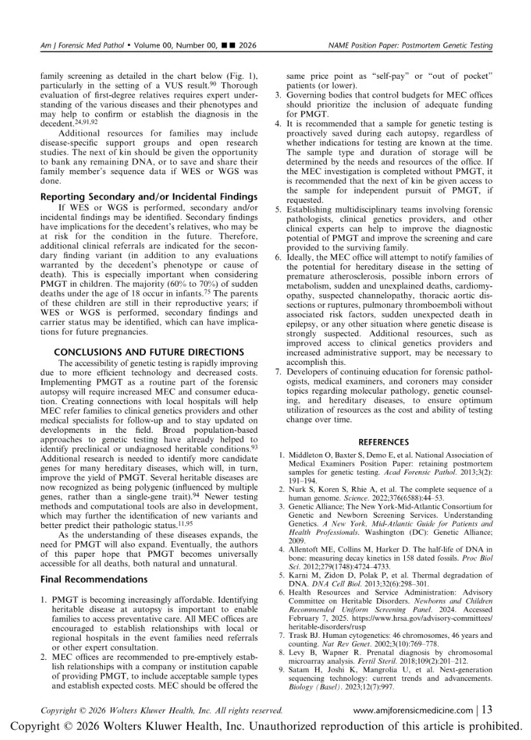 Title: The National Association of Medical Examiners (NAME) Position Paper: Postmortem Genetic Testing in Forensic Pathology Cases