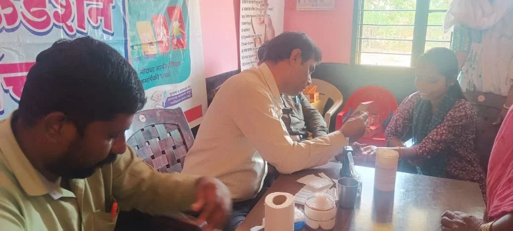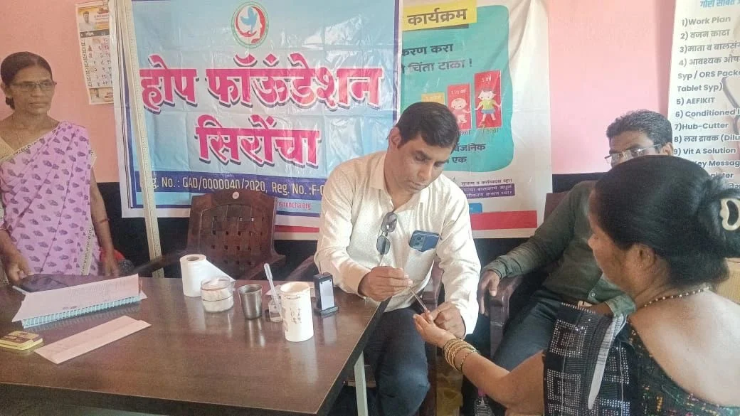 ”Today, Hope Foundation Sironcha organized a Free Hemoglobin Screening Camp for women from the Kaikadi Vasti and Eramushti community.
