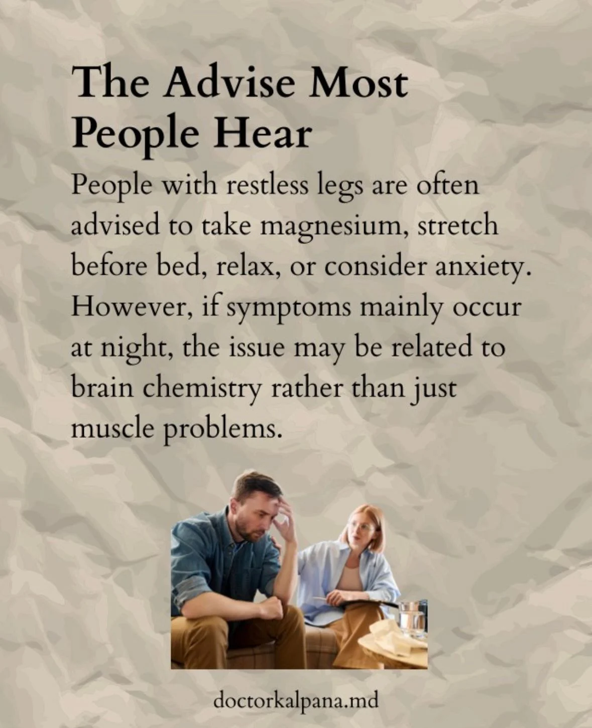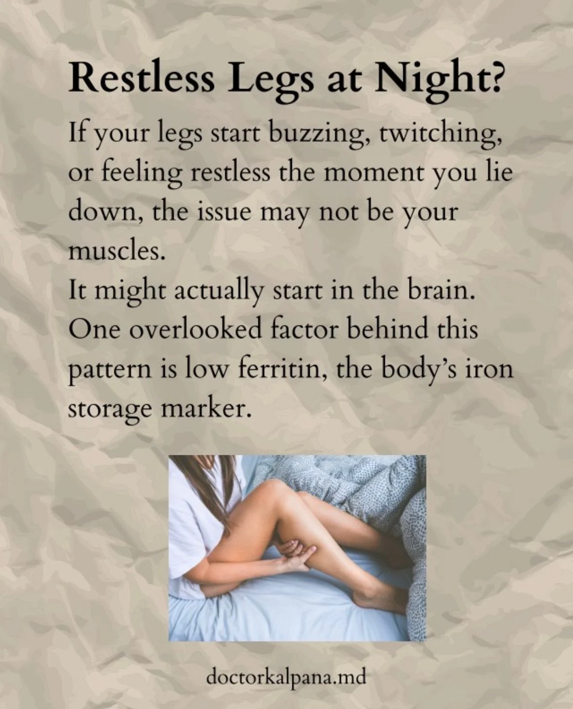 Nighttime restlessness in the legs is often simplified-magnesium, stretching, or stress are commonly blamed.