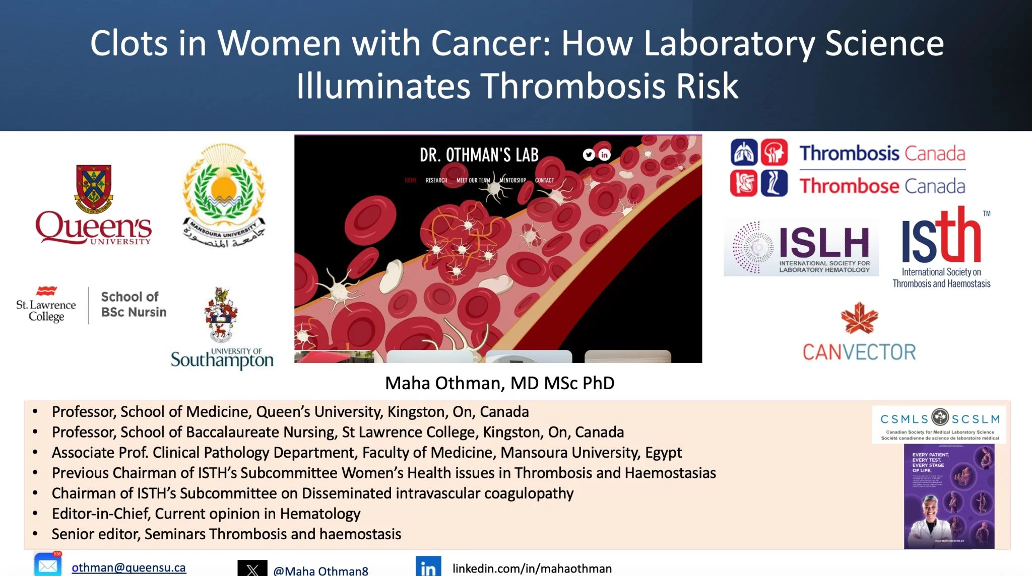 Maha Othman, Research Co-Lead at the CanVECTOR Research Network and Co-Chair of the SSC on Disseminated Intravascular Coagulation at the International Society on Thrombosis and Haemostasis (ISTH), shared a post on LinkedIn: