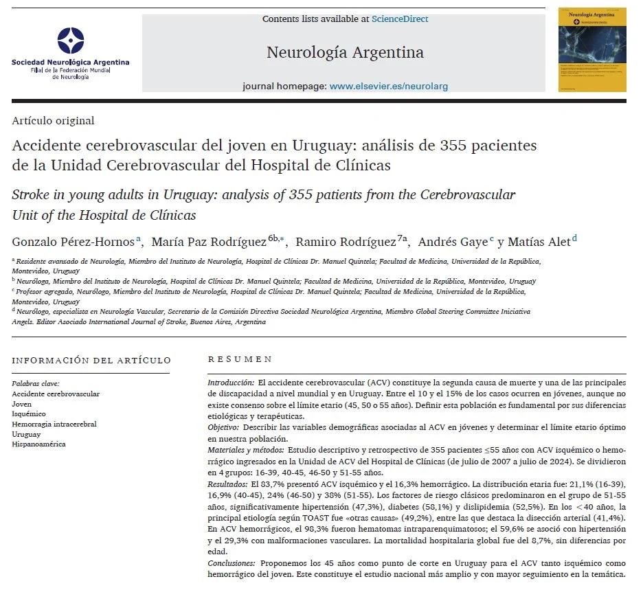 ”I’m pleased to share our new publication in Neurology Argentina: ‘Young Stroke in Uruguay: Analysis of 355 Patients from the Stroke Unit at Clinicas Hospital.’