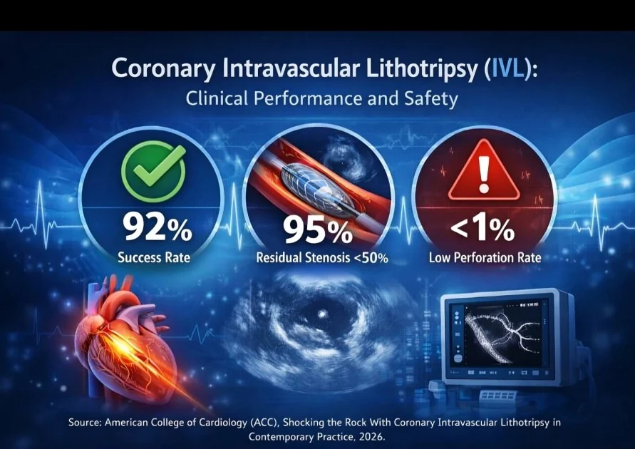 Importantly, IVL is associated with a low incidence of serious complications, including a coronary perforation rate below 1%, which is substantially lower than that reported with some atherectomy-based strategies. This safety profile, combined with technical simplicity and a short learning curve, supports IVL as a valuable option for contemporary percutaneous coronary intervention in calcified coronary artery disease.”