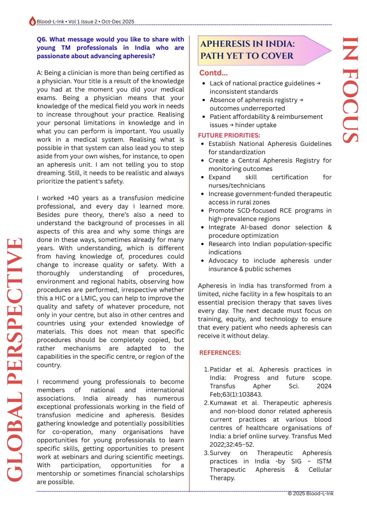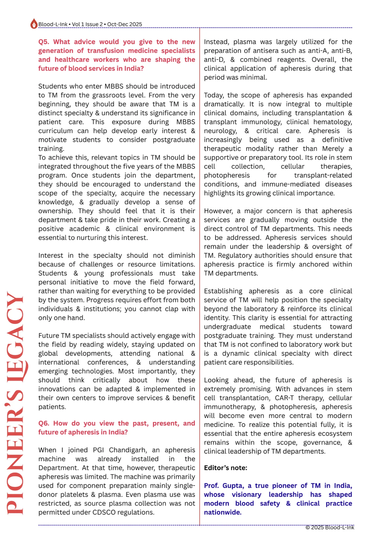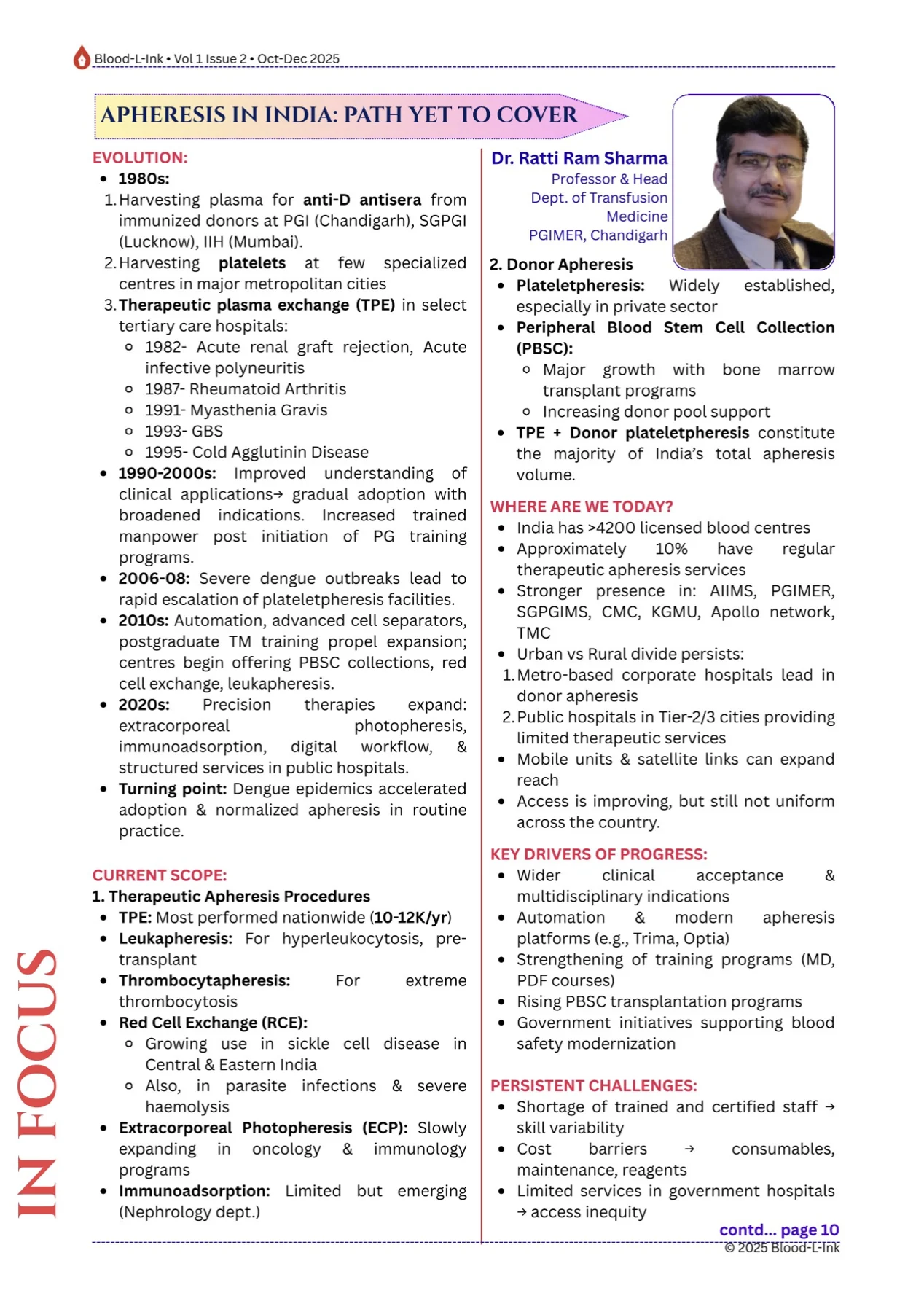 This special edition spotlights Apheresis in India, charting its journey from a niche service to a pillar of modern Transfusion Medicine.
