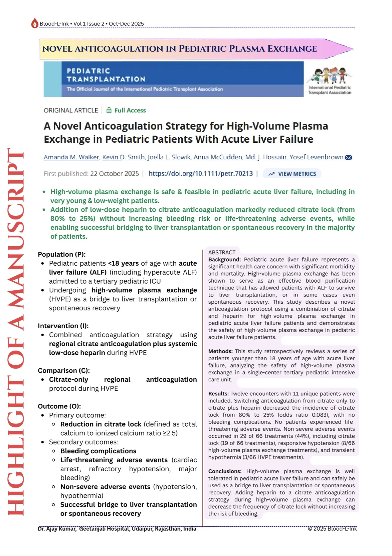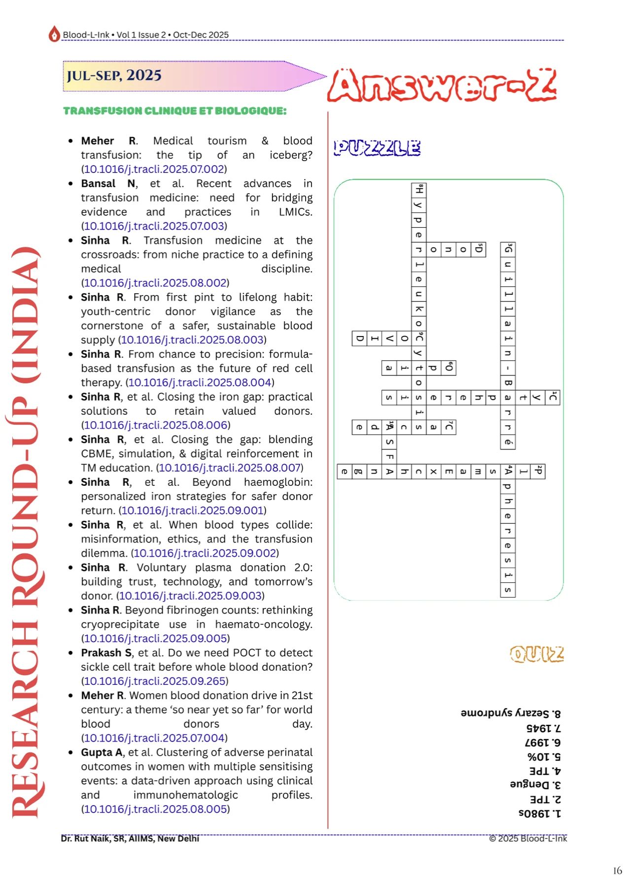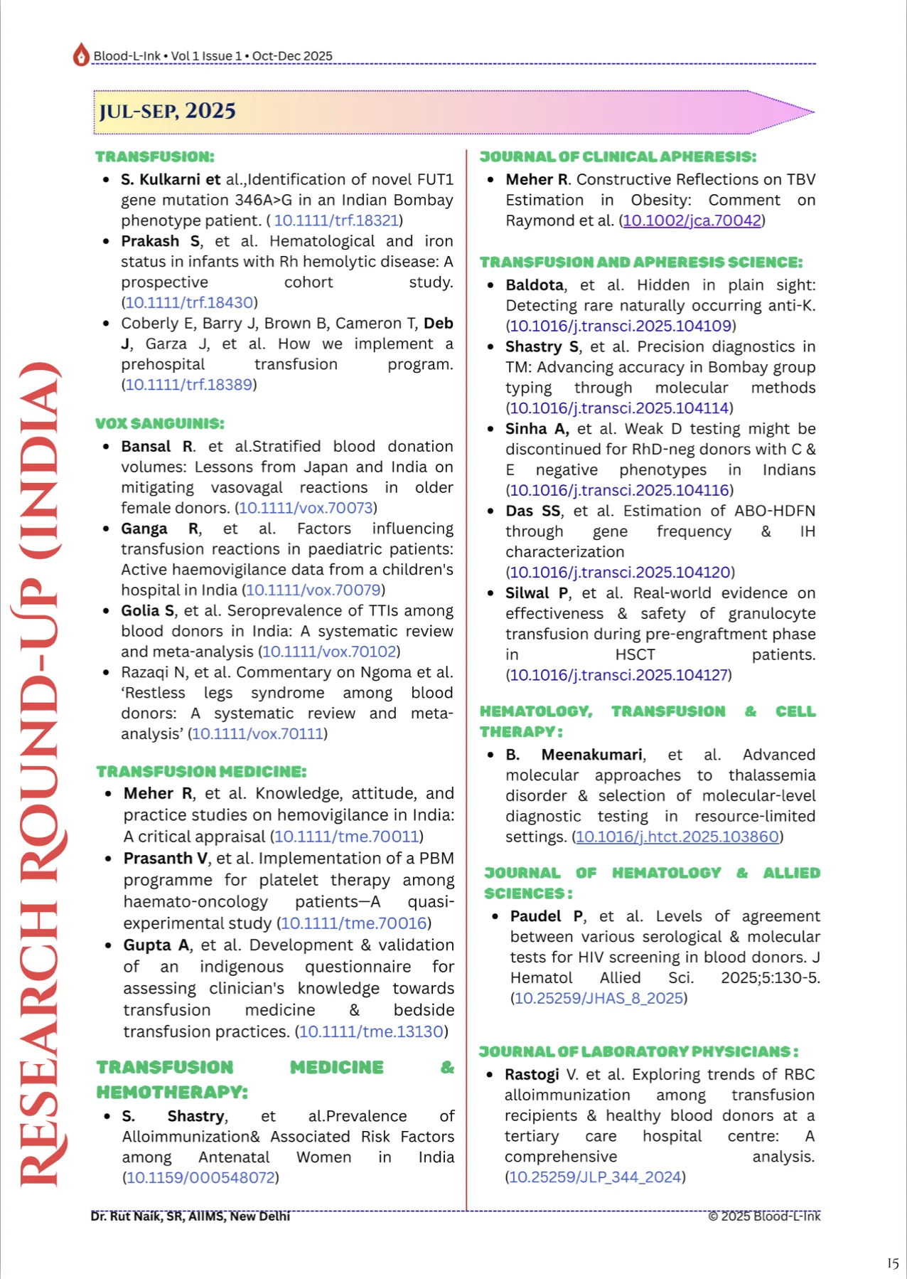 Radheshyam Meher, Senior Resident at AIIMS, shared a post on LinkedIn about the recent issue (Vol. 1, Issue 2) of BLOOD-L-INK, he and his colleagues co-authored, adding: