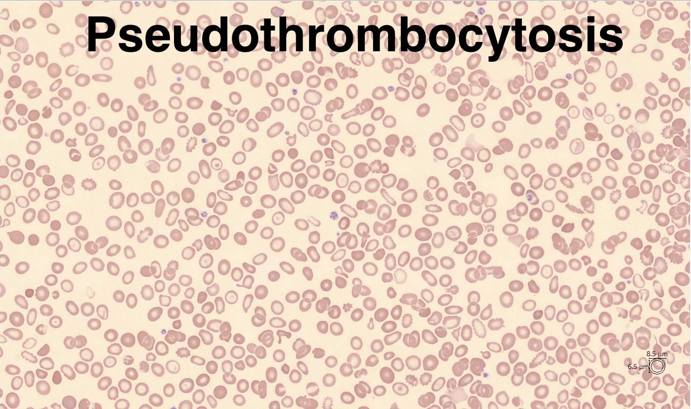 The analyzer may misclassify RBC fragments within the platelet size window Resulting in pseudothrombocytosis