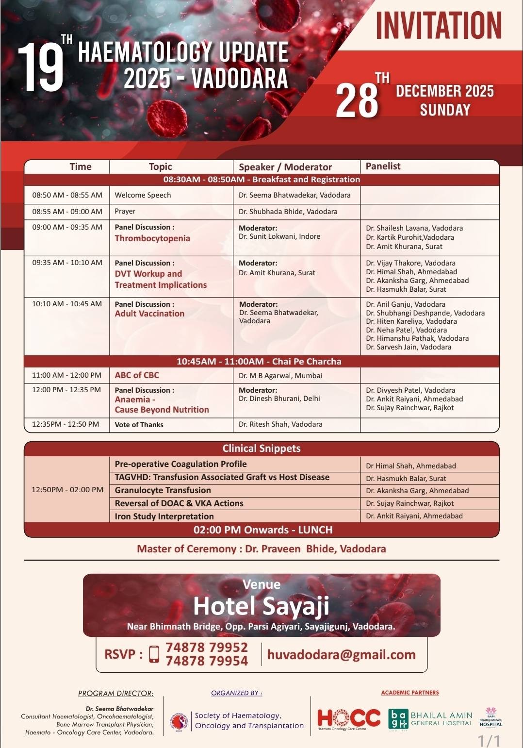 Dr Amit Khurana on 19 th Haematology Update organised by Dr Seema Bhatwadekar and Team on 28 Dec 2025.